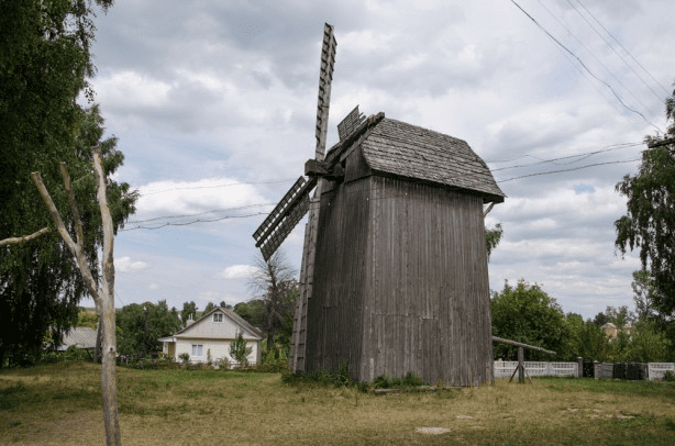 Уникальность этой мельницы состоит в том, что весь ее корпус вместе с механизмом для размола, крыльями и валом вращаются в зависимости от ветра. В центре неподвижной крестовины закреплен столб, так называемый штибер – это остов ветряной мельницы. Вокруг него и оборачивается вся система.
